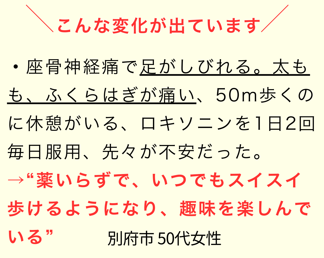 痛みのない毎日を楽しめるようになりました。